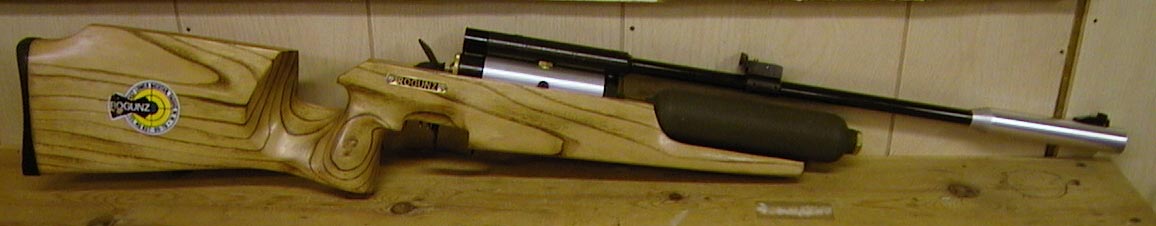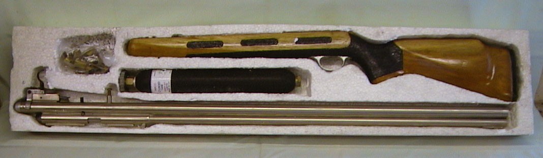 PCP/CO2 a .22 cal swing breech rifle. The horizontal tank mounted under